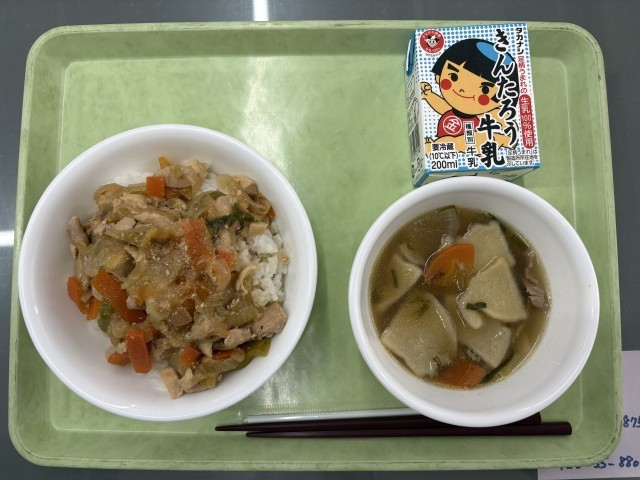 今日は青森県や岩手県の名産品である南部せんべいを使った「せんべい汁」の献立です。