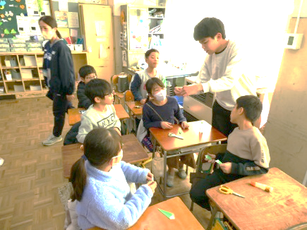 私(担任)からは、「これまできちんと学習・経験を積み重ねてきたから上手にできた。」という話をしました。少し厳しさを感じたかもしれませんが、宿泊学習で培った自分たちで判断し進めていく力、保育園児との交流で学んだ創意工夫が「プレゼント作りを上手に進める」基礎となっています。