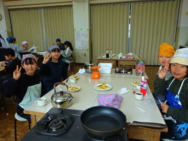 学習のめあては「団らんを楽しもう」だったのですが、実際には「いももち」をつくるのに時間がかかって、ほとんどの班が会話を楽しむまで時間がとれなかったのですが、それでもグループで協力して調理をし、みんなで「いももち」を食べることができました。「家でもつくってみよう!」という人もいました。安全に気をつければ、5年生でもできる料理ですので、ぜひつくってみて、家族での団らんをより楽しくしてほしいと思います。