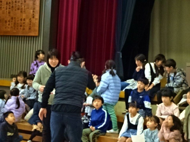 1年生が体育館で呼び掛けや校歌の練習をしていました。4月に入学する新入生に向けて、入学式で放映する動画の撮影をしているところでした。姿勢もよく、大きな声で堂々と自分のセリフを言ったり、タイミングをあわせて全員でセリフを言ったりしていて立派でした。そして校歌を大きな声で元気よく歌っていました。新入生を迎える準備も少しずつ整ってきています。きっと頼もしい先輩になってくれそうな1年生でした。最後の写真はちょっと休憩の時の様子です。