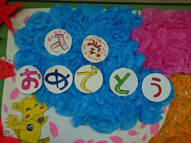 さて、写真の飾りは昨年度の終わりに上級生がつくったものです。「入学おめでとう」のメッセージの中に、よく見ますとさらにメッセージがありました。「ここでガンバレ」「いちねんせい ウェルカム たのしいよー ジャンボスベリダイ」とありました。「ここでガンバレ」の言葉に、どんな思いが込められているのかなと考えます。みんなが「芦子小学校でがんばろう」と思える学校にできるよう、私もここでがんばろう!と思う1年のはじまりになりました。今年度もどうぞよろしくお願いします。