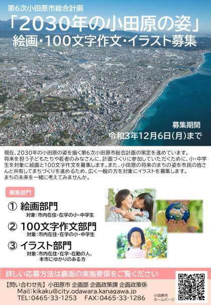 小田原の将来を担う子どもたちや市民の方に、2030年の小田原のまちづくりに参加していただくための作品募集です。