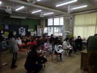 ミシンの前に座る5年生も、ミシンの扱いに慣れて楽しそうでした。