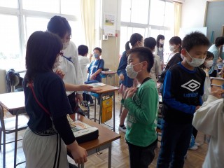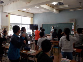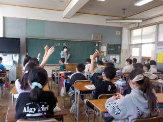 英語でHow are you ?と聞く練習を、ジャンケンを交えながら楽しく練習しました。