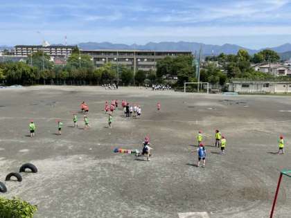運動場で体育をしたり野菜を植えたり、学年ごとにさまざまな活動をしています。6年生は、修学旅行前に自分たちで調べたことをオンラインで発表しています。