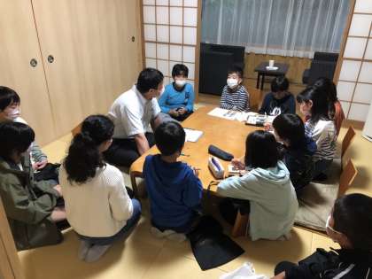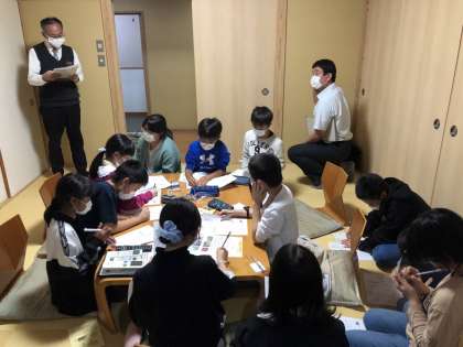 部屋の中に入って、荷物整理をした子どもたち!班長・副班長を集めて会議を行いました。班長には、貴重品の管理の仕方を、副班長には避難経路の確認を指示し、班の友達と情報を共有しました。
