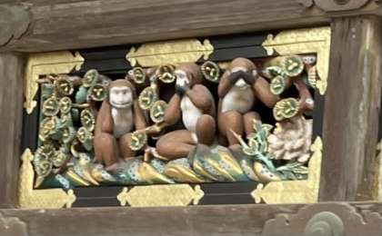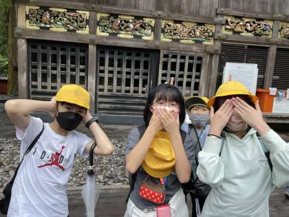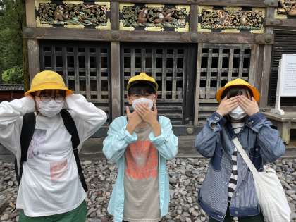 有名な三猿を発見しました。イメージしていた大きさより小さかったようです。見惚れているとあっという間に時間が過ぎていきました。