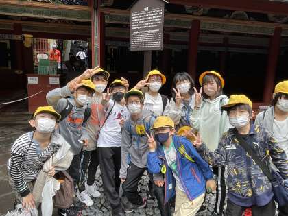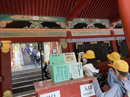 坂下門の下には眠り猫・雀がいました。その後、奥宮に続く石垣の階段を登り、徳川家康公のお墓を見学しました。