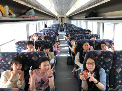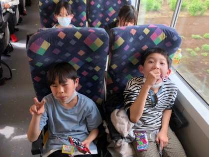 最後のおやつタイムです。黙食ですが、みんなで美味しく食べています。小田原まであと少し!