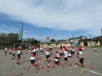 生活の中で聞こえてくるさまざまな音!それを線で表現するするとどうなるのかを考えて、1人ひとり思い思い表現しました。先週は、画用紙に表現し、クイズを出し合いました。そして、今週は先週の学習を生かして下絵を描いていきました。子どもたちはとても意欲的に学習に向かい、目に見えない音を表現することの楽しさを感じていました。