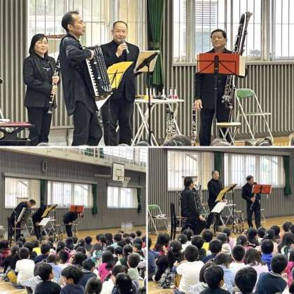 今年は、「SPICY4」というクラリネット3人とアコーディン1人の4人組のみなさんをお迎えし、1〜3年生が2校時、4〜6年生が3校時に鑑賞をしました。