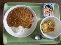 今日の給食は、米粉を使ったパンとタンドリーフライドチキンと春キャベツのポトフです。今日のポトフには、長崎県産の新じゃが、愛知県産の春キャベツが使われています。春野菜の美味しさが感じられるメニューです。タンドリーフライドチキンは、子どもたちに人気のメニューの1つです。