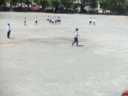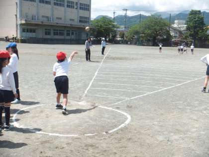 今日は快晴です。体育館やグラウンドでは昨日できなかったスポーツテストを行っています。写真は3年生のソフトボール投げの様子です。去年よりも記録は伸びましたか?
