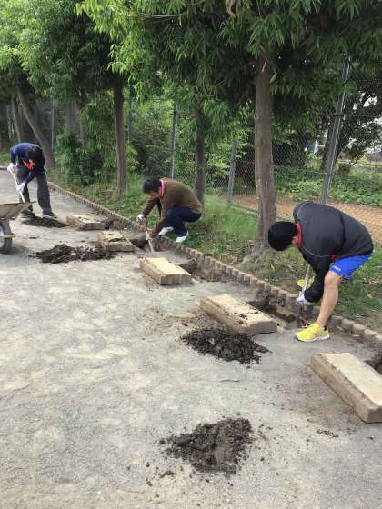 切った枝葉の片付け、運動場の側溝の土取り、プール付近の草取りなど、たくさんの仕事がありました。