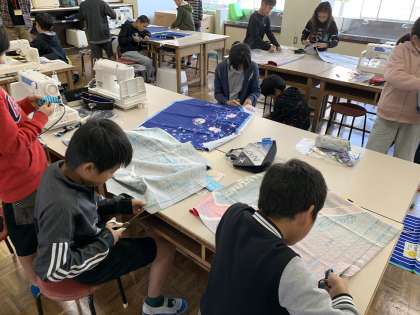 片付けも、班の仲間と協力してがんばりました。来週はいよいよミシンを使って縫っていきます。
