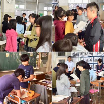 資料の登場人物の心情を場面ごとに考えていました。少人数のグループで意見を出し合ったことで、多くの児童が自分の考えを表現できました。登場人物それぞれの立場を考えることで、自分事として考えることができたようです。