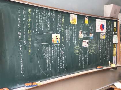 授業の最後には自己を振り返り、「男女仲良く助け合うために心がけたいことはどんなことか。」と、真剣に考えていました。