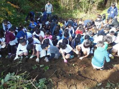 本日は、楽しみにしていたさつまいもの収穫日です。1・2年生が、運動場の北側にある市川さんの畑をお借りして、さつまいもを収穫しました。このさつまいもは、6月に1・2年生が植えたものです。一生懸命土を掘り起こして、大きなさつまいもをたくさん採ることができました。さつまいもを育てたり収穫する準備をしたりしてくださった市川さん、ありがとうございました。