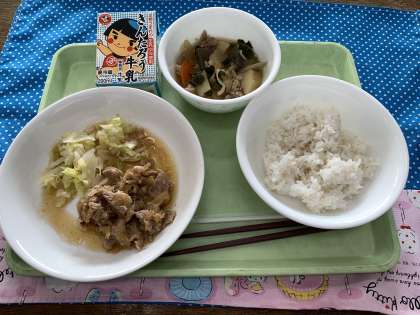 今日の給食は、子供たちが大好きなメニューである「豚肉の生姜焼き」と、野菜がたくさん入った「けんちん汁」です。「けんちん汁」の由来は鎌倉にある建長寺の修行僧が作っていたため、「建長汁」がなまって「けんちん汁」になったという説があるようです。今日は生姜焼きと一緒に美味しくいただきました。