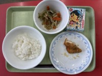 毎週水曜日は、パン給食です。今日は玄米パンです。ふわふわもっちりしていて好きな子が多いです。今日のスープはトマト味で仕上げてあります。大きめの野菜やウィンナーがごろごろ入っていて、ボリュームがあります。