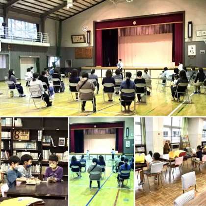 (1年生の懇談会が行われている間、図書室で待っている子たちがいました。静かに本を読んでいました。)