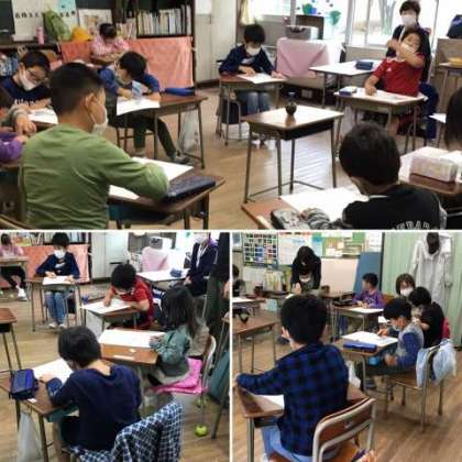 いつも筆記用具として使っている鉛筆を今回は画材にして、花瓶をかきました。鉛筆の持ち方やかくときの角度もいつもと違います。みんな集中して取り組んでいました。