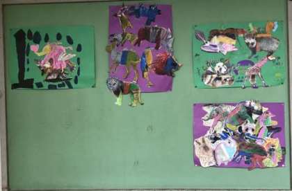 わかあし級のろうかには、この前取り組んだ作品が掲示してあります。こちらもダイナミックな仕上がりです。わかあし級の前を通ったら、ぜひ見てください。