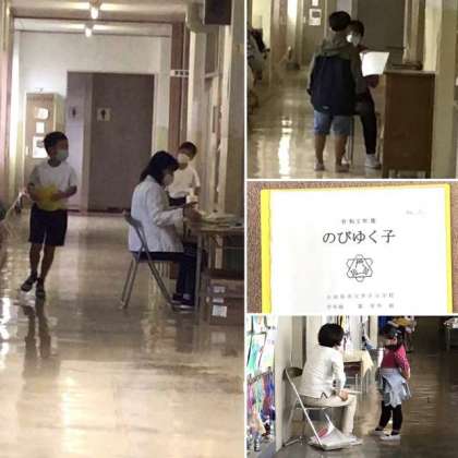 先ほど子どもたちが下校しました。今日は、全クラスとも子どもたちに「のびゆく子」を渡しました。担任からことばを添えて、一人ひとりに手渡しました。