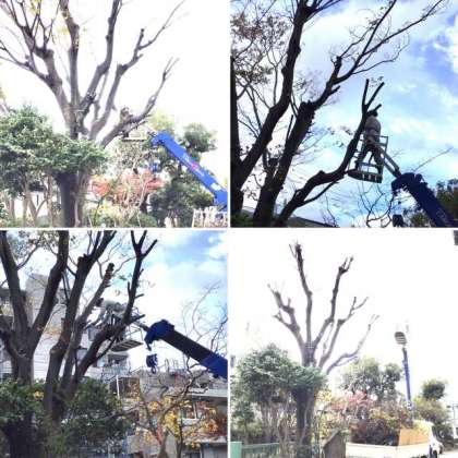 10月〜3月は木の成長が緩やかになる時期なので、枝を伸ばしている途中で切るよりもケヤキにとって負担が少ないそうです。