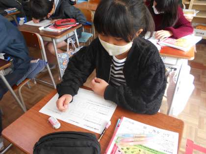 黄・赤・緑の栄養に分けたり、いろいろな食品を食べて栄養を補っていったりすることを学んでいました。