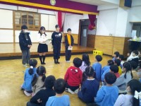 スポーツフェスティバルの内容について担任の先生から説明があり、そのあと3年生と4年生の表現の動きを見ていたようです。
