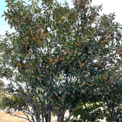 金木犀には、9月にいったん短い期間で花が咲きそのあと10月に新しい花が開花する種類があるそうですが、学校の金木犀もその種類のようです。2回目の花の時期は長く、今回は長い間、香りを楽しむことができそうです。