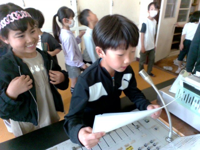 1年間取り組む学級目標を代表児童が放送で発表しました。