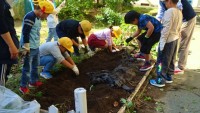 2年生が生活科で育てている夏野菜がすくすくと育っています。「ミニトマトの実が5つもできてた!」「小さいキュウリがある!」と教えてくれました。出来たら家に持って帰りたいという子もいました。たくさん持って帰れるよう、野菜たちに声をかけて、お世話をしていきましょう。