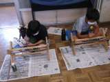 指導者の話をよく聞いて製作しました。 ボンドを使って、接着します。