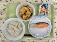 ★☆★☆★今日のメニュー★☆★☆★ごはん牛乳鮭の塩焼き豚肉と厚揚げの煮物★☆★☆...