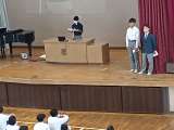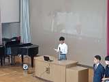 前期の終業式の前半は、各学年の代表生徒から前期の反省と後期に向けた抱負の発表がありました。どの学年の生徒からも、個人として、学年代表としての思いが、力強く語られました。