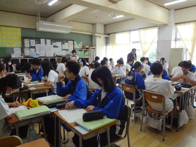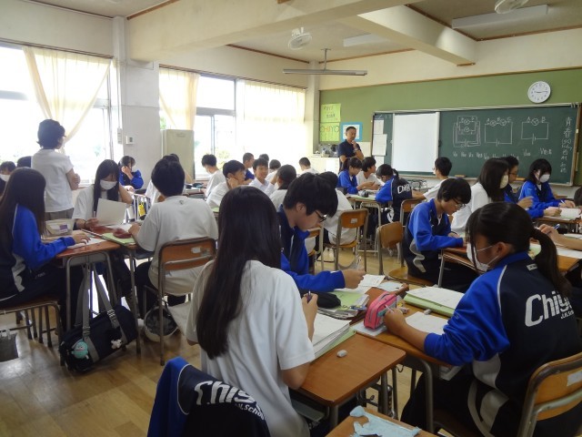 考察の時間を大事にした授業が展開されていて、四人班の中で自分の気づきを発表しています。
