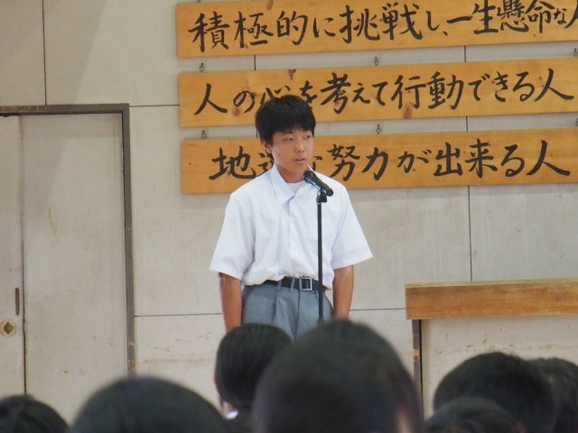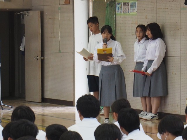 本番さながらに実行委員が運営を務め、各クラスの代表が思いを伝え、入退場などの所作を確認しながら緊張感をもってリハーサルで歌うことができました。