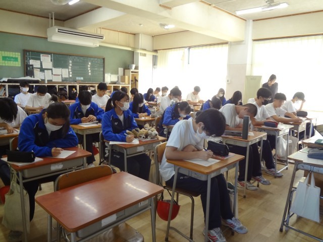 3年2組は、「手紙~拝啓 十五の君へ~」の歌詞を使った授業です。