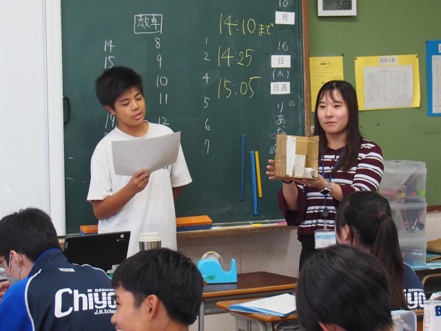 5~6校時に、友人の困りごとを解決するアイデアをもとに「プロトタイプ(試作品)」をそれぞれが作成し、プレゼンテーションをしました。