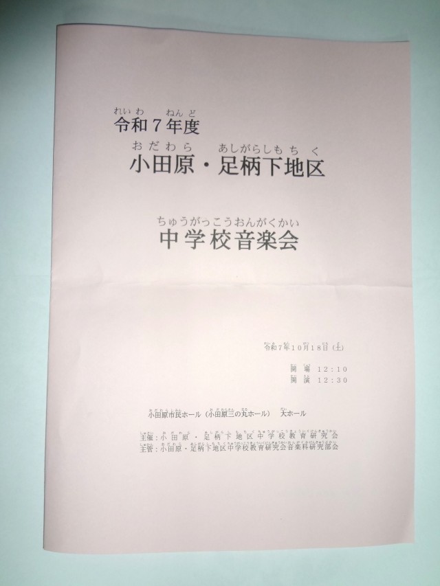 小田原市民ホール(三の丸ホール)で小田原・足柄下地区中学校音楽会が行われました。