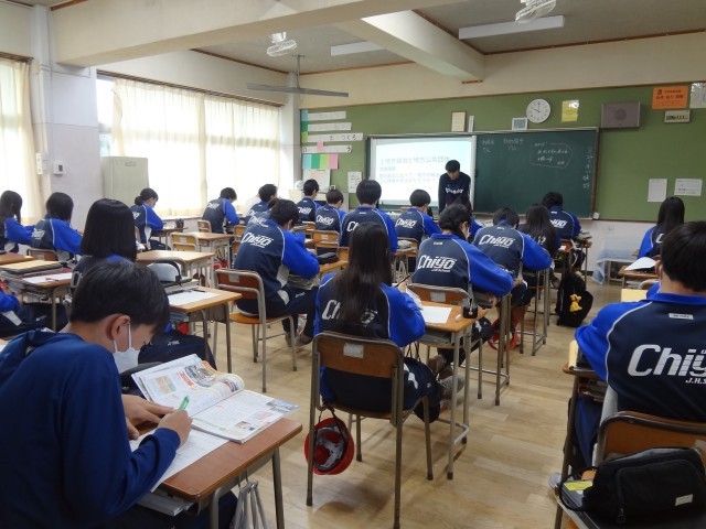 3年3組は、社会の授業です。