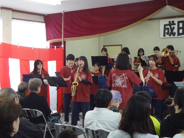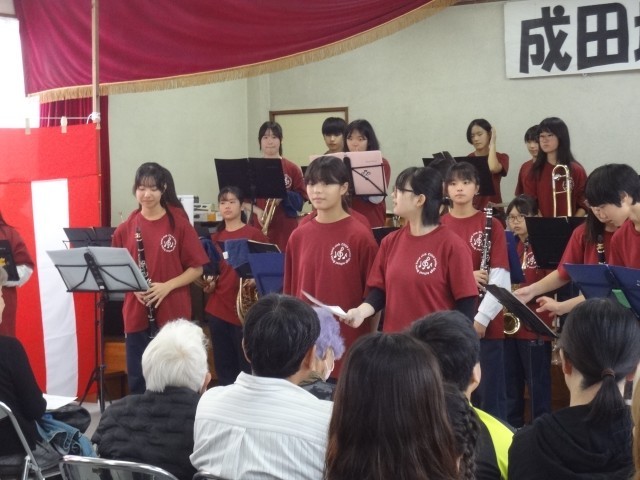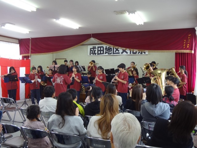 成田公民館において、成田地区文化祭 演芸部門が行われ、千代中吹奏楽部が出演しました。