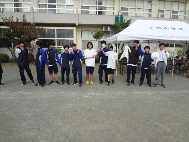 小田原市いっせい総合防災訓練が市内各所で行われ、千代小学校での訓練に男子バドミントン部がボランティアとして参加しました。