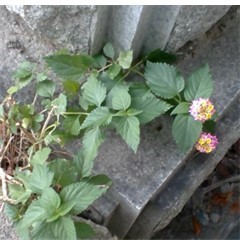 左の花は「ヒメツルソバ」、右の花は「ランタナ」と言うそうです。