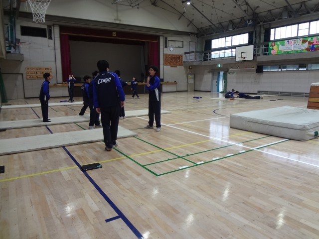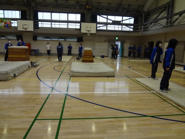 跳び箱は8段、マットではハンドスプリングに挑戦です。