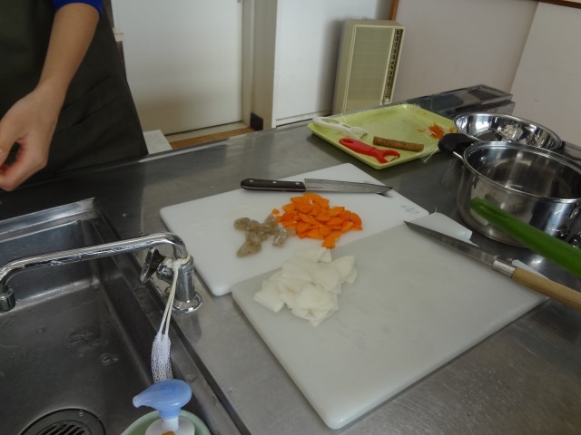 2時間続きで豚汁を作ります。