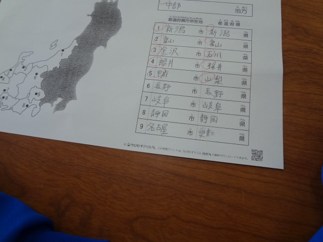 今日は中部地方の学習ですが、その前に「県庁所在地の確認」をしています。