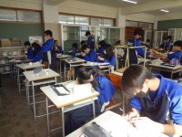 理科室で「力の大きさのはかり方」の単元の学習をしています。